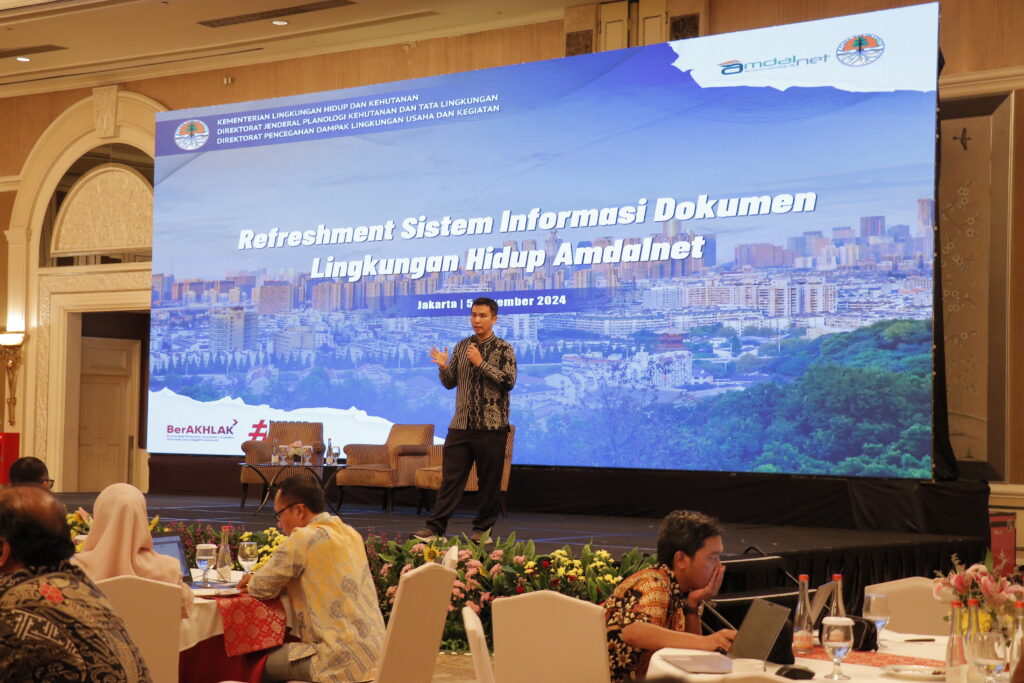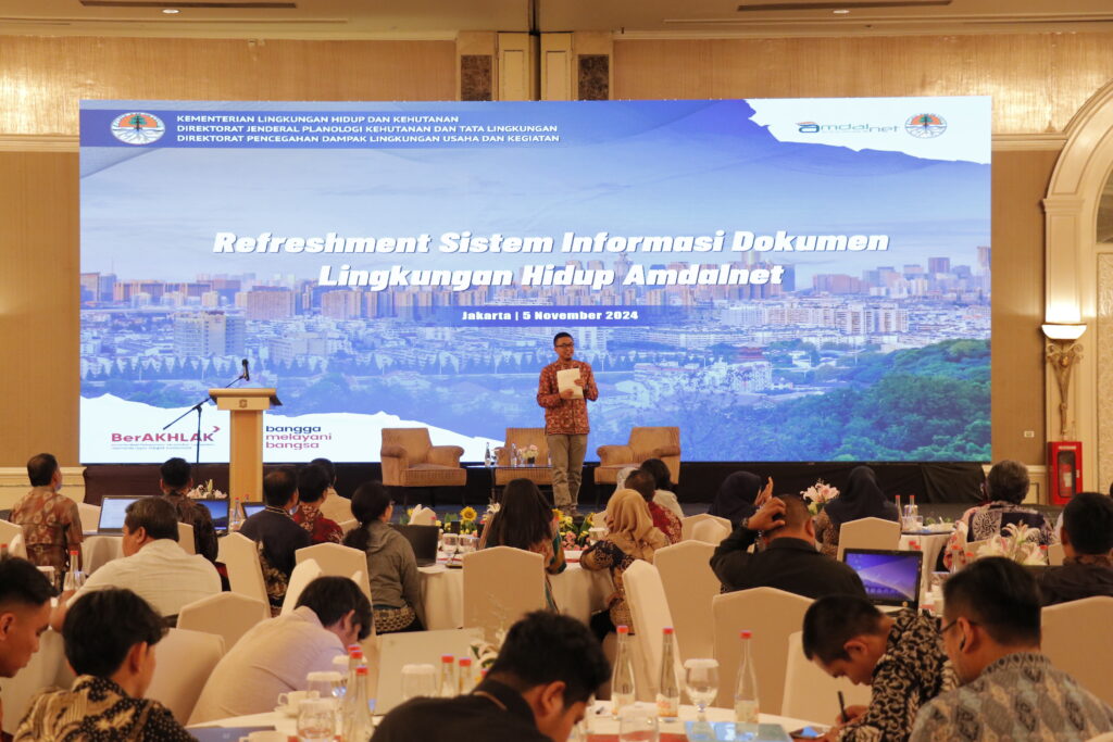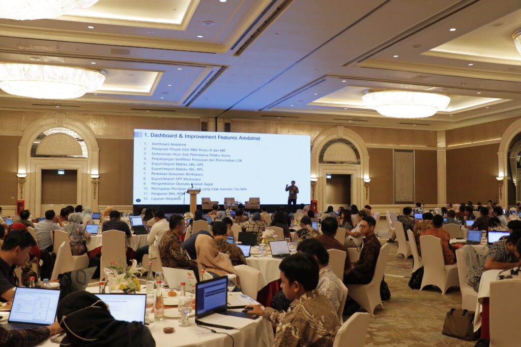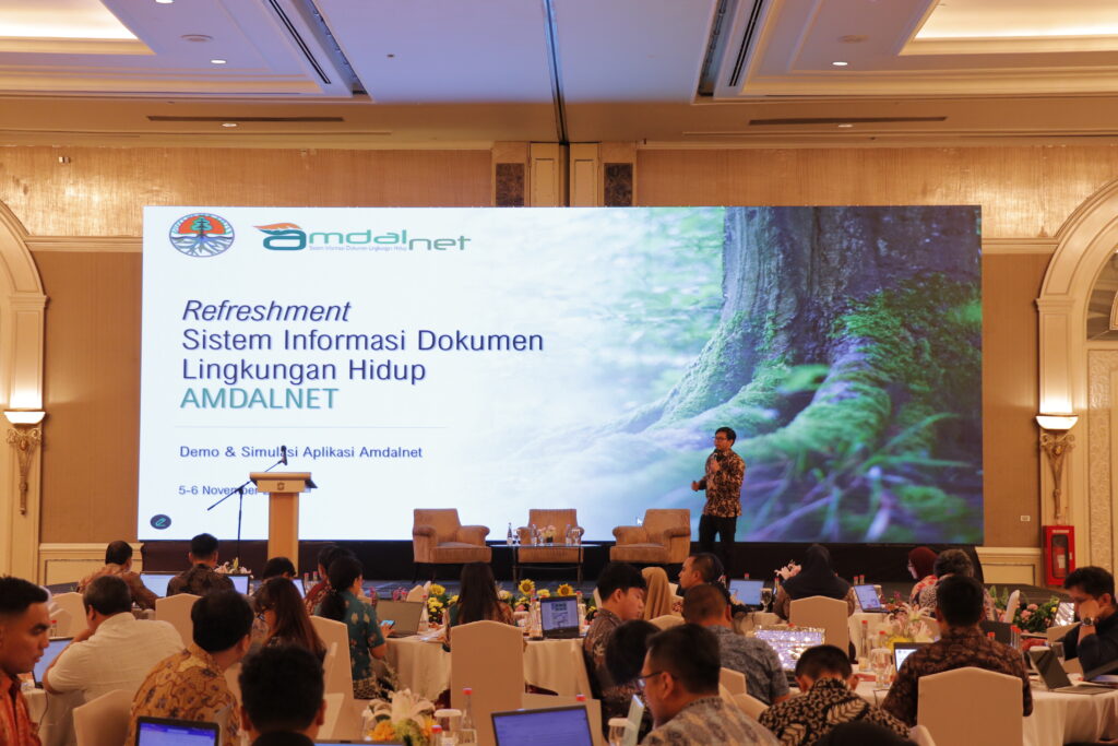 Dokumentasi pelaksanaan Refreshment Sistem Informasi Dokumen Lingkungan Hidup Amdalnet. Kegiatan ini telah berlangsung pada tanggal 5-6 November 2024 dan bertempat di Shangri-La Hotel Jakarta.