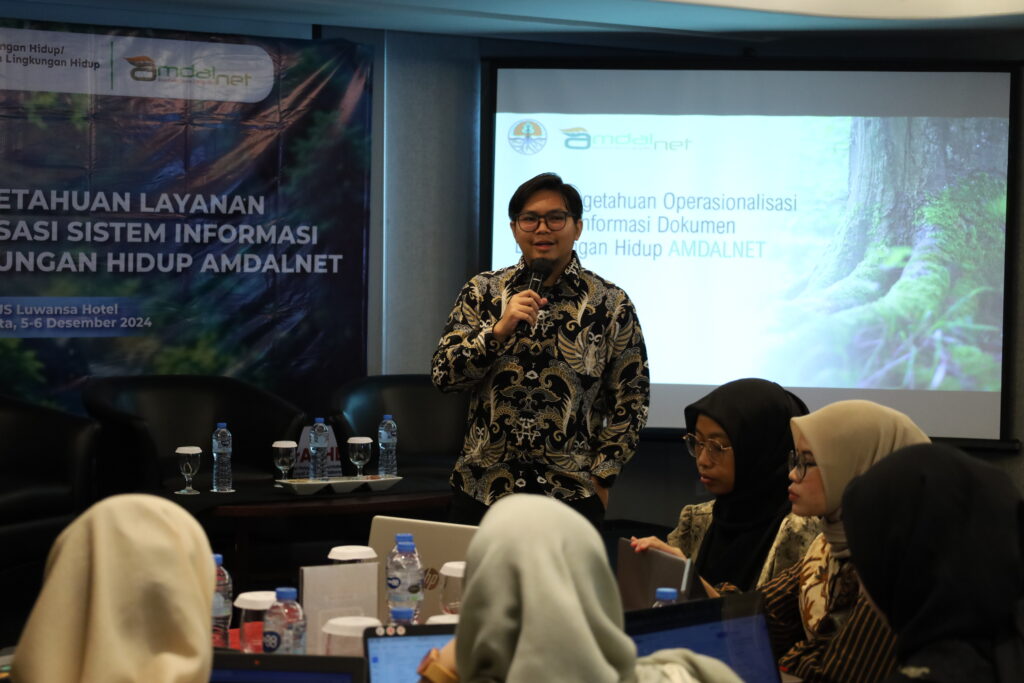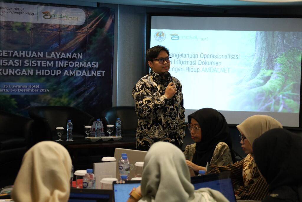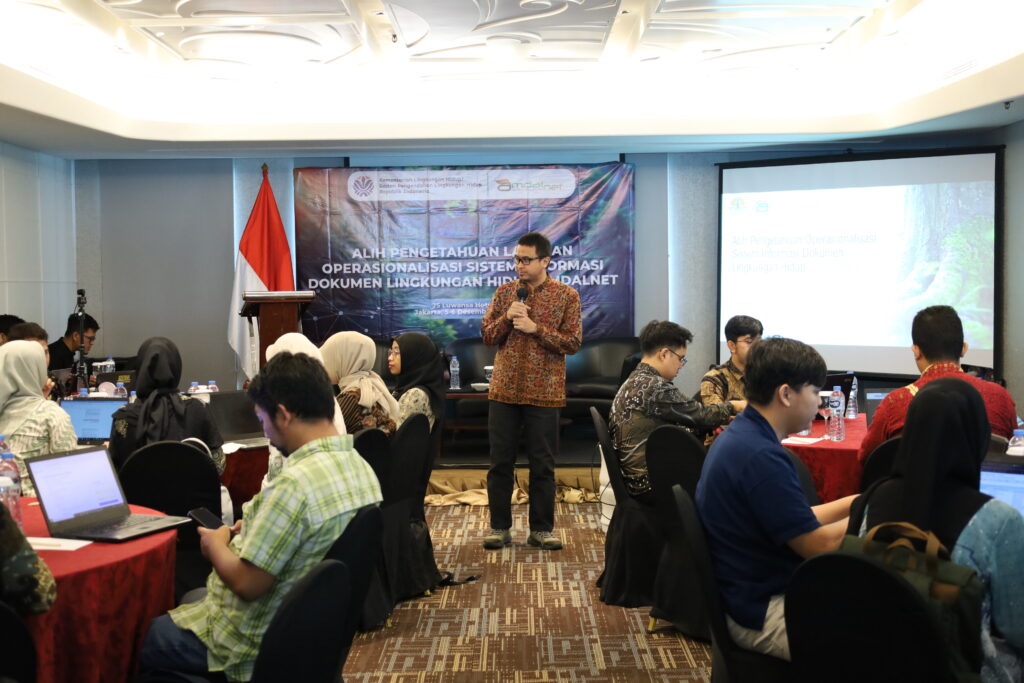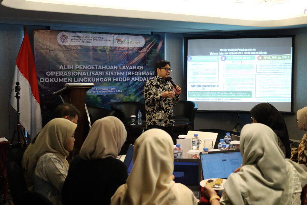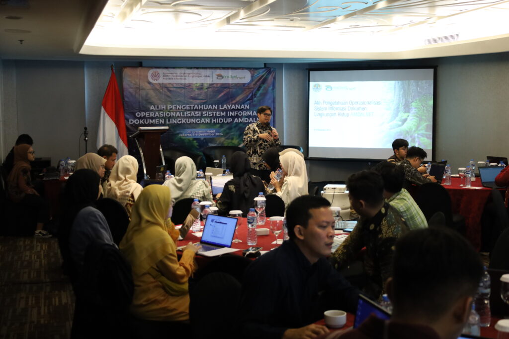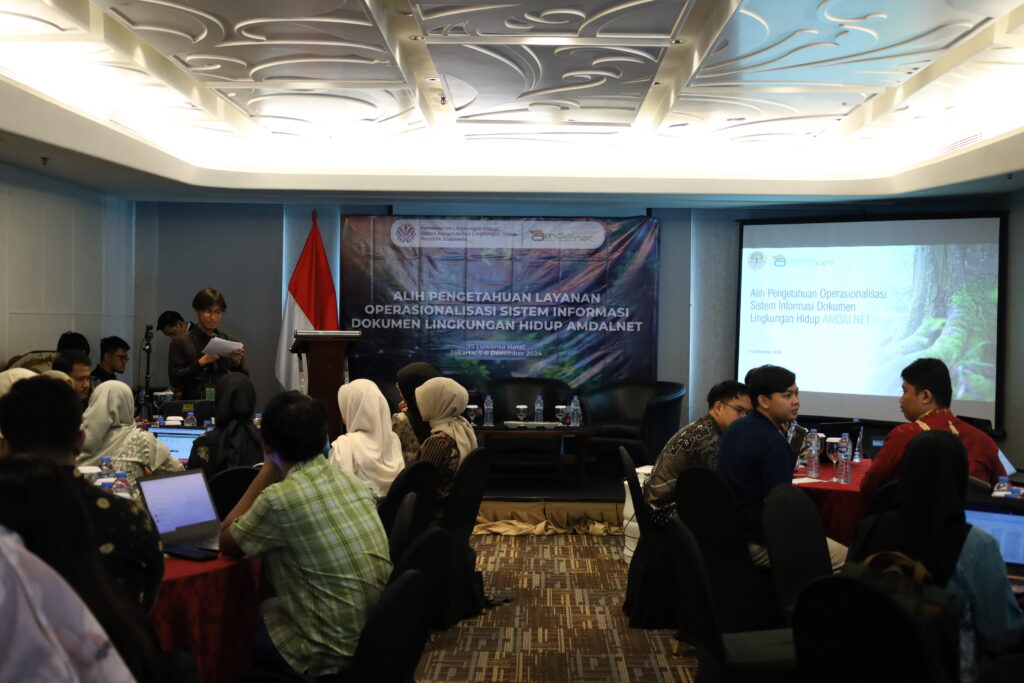 Dokumentasi kegiatan Alih Pengetahuan Layanan Operasionalisasi Sistem Informasi Dokumen Lingkungan Hidup Amdalnet. Kegiatan ini telah berlangsung pada tanggal 5 Desember 2024 dan bertempat di Hotel JS Luwansa Jakarta.