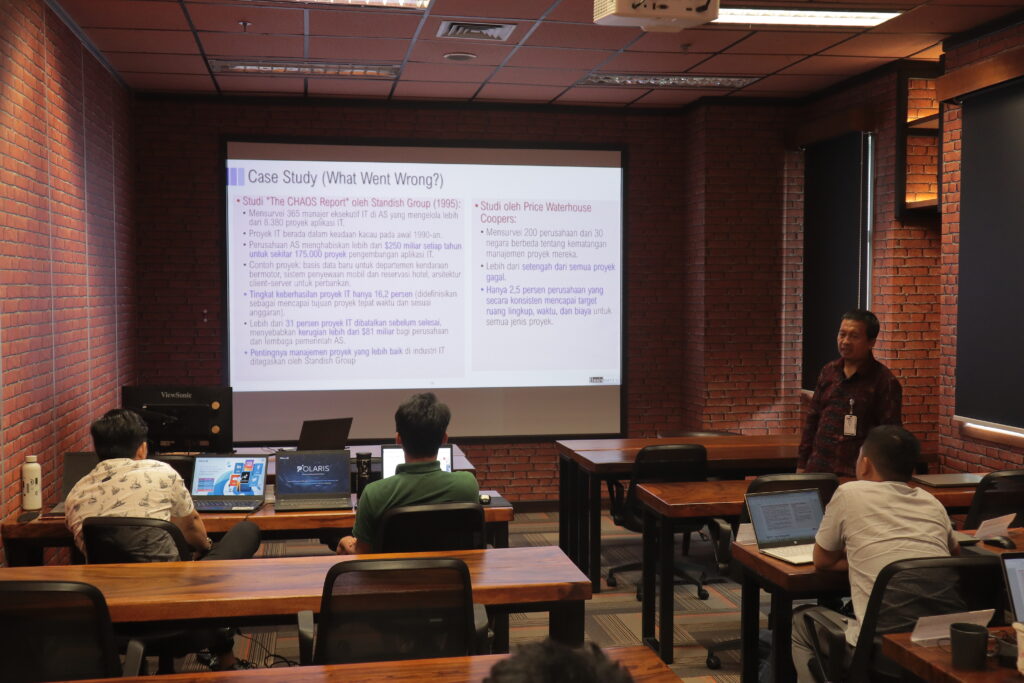 IT Project Management Fundamentals Posted by Aliffirhan Thariq Categories Running Course Date December 3, 2024 Berikut beberapa dokumentasi pelaksanaan Regular Training IT Project Management Fundamentals Share: Previous post Sosialisasi Enterprise Architecture & Data Mining Geo Dipa Energi December 3, 2024 Next post Test Driven Development Fundamentals December 3, 2024 You may also like Software Quality Assurance January 12, 2026 Data Analytics Metabase Fundamentals December 15, 2025 Data Analytics Python Fundamentals December 9, 2025