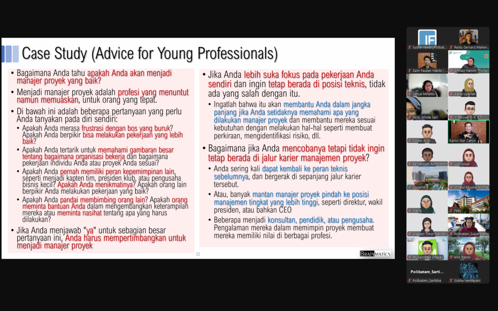 Berikut beberapa dokumentasi pelaksanaan Private Online Training Systems Analysis & Design Basic dari Politeknik Negeri Batam