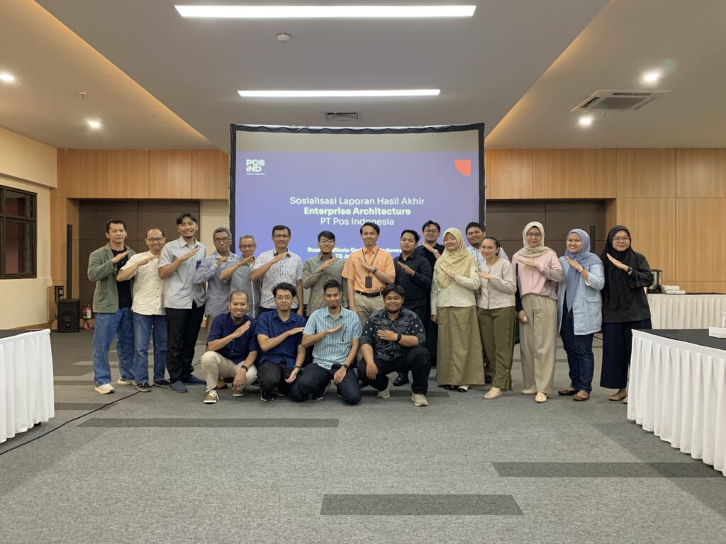 Dokumentasi Kegiatan Workshop Pengelolaan Enterprise Architecture dan Sosialisasi Laporan Hasil Akhir Penyusunan Enterprise Architecture PT Pos Indonesia Kegiatan ini dilaksanakan pada hari Senin-Rabu, 20-22 Januari 2025. Dihadiri oleh tim PT Pos Indonesia dan Braindevs.