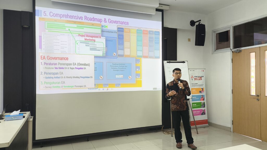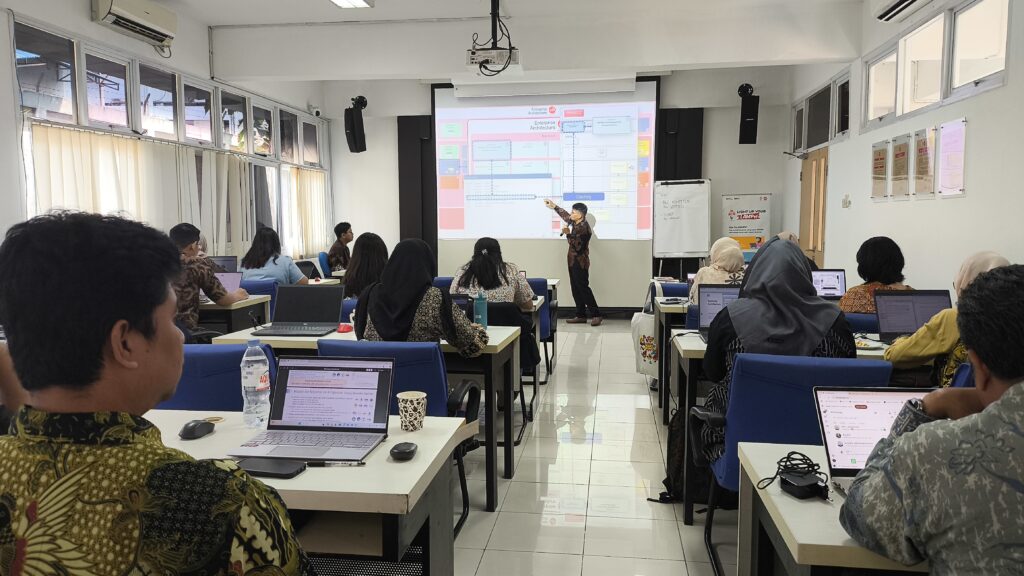 Peserta tidak hanya menyimak teori, tetapi juga terlibat aktif dalam diskusi tentang bagaimana EA mampu memperkuat integrasi antar sistem dan proses dalam organisasi.