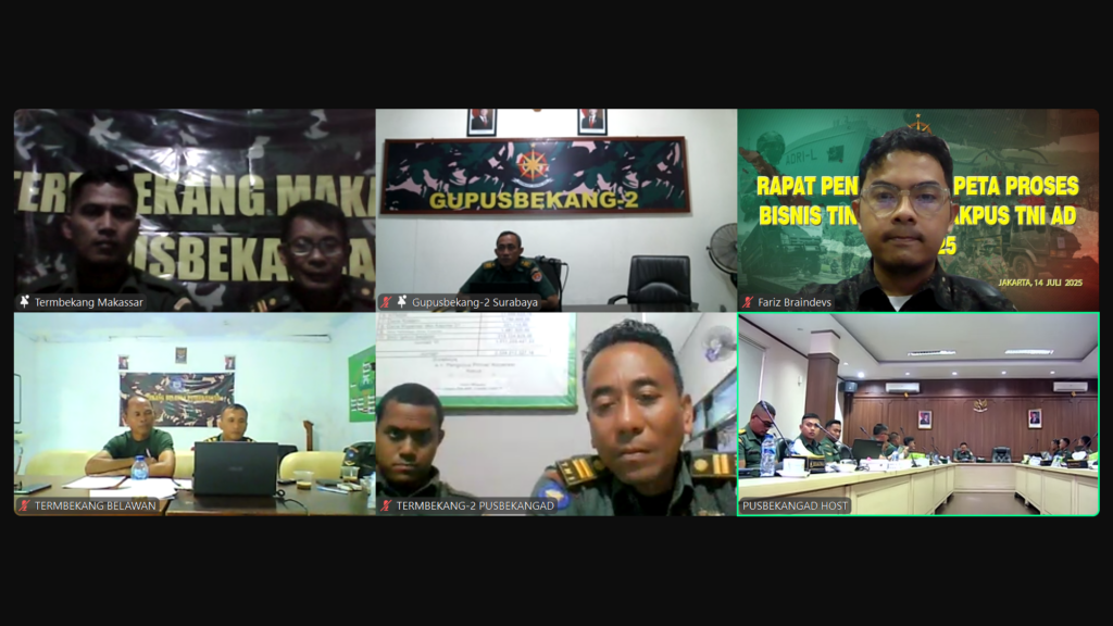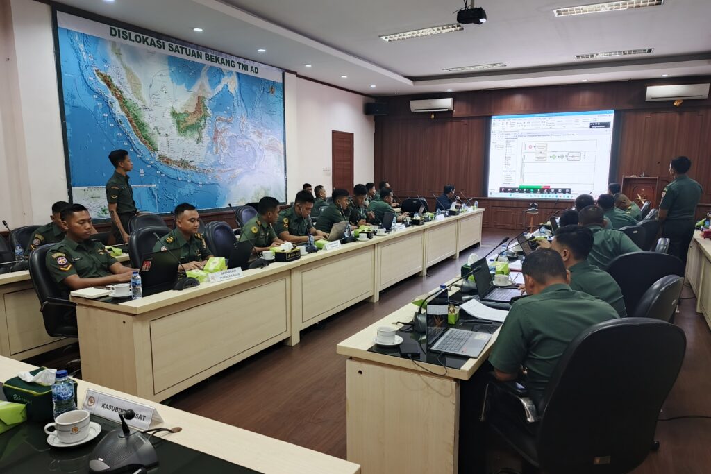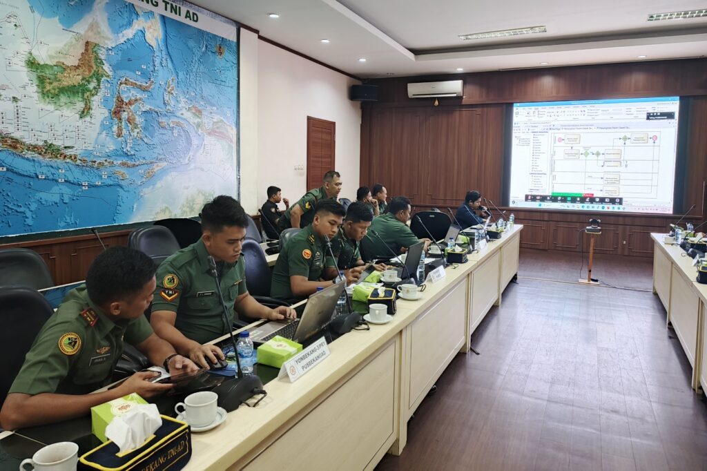 Kegiatan Bimbingan Teknis Penyusunan Proses Bisnis bagi Unsur Pelaksana Pusbekangad TNI AD telah sukses digelar secara hybrid — offline di Mapusbekangad Jakarta Timur dan online melalui Zoom.