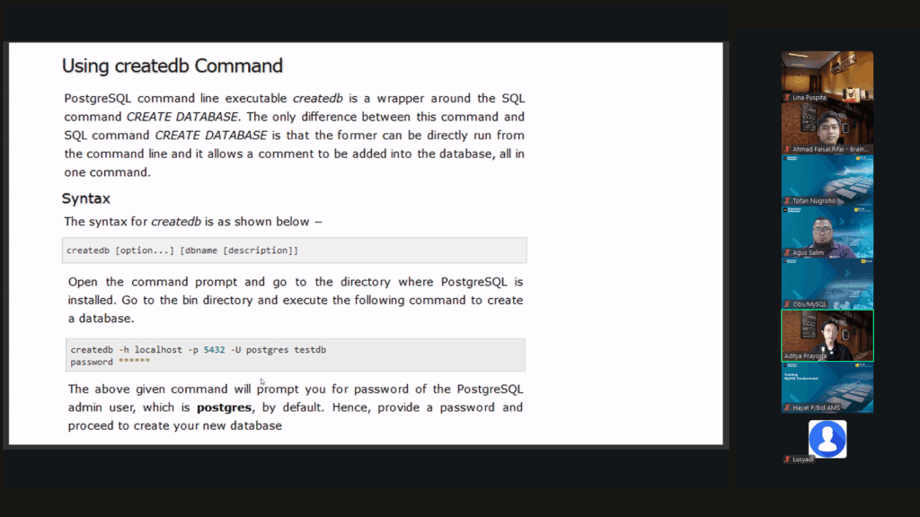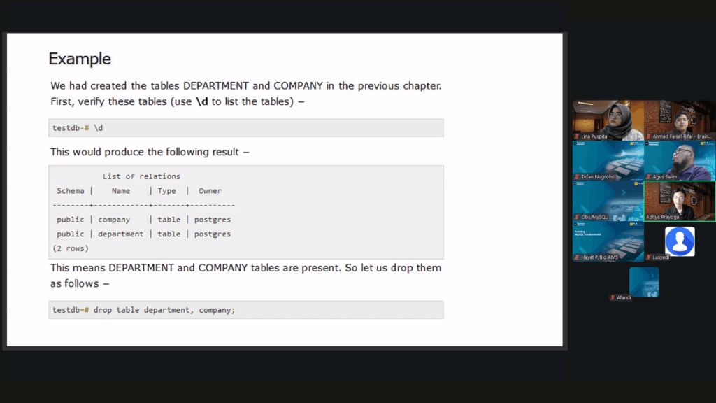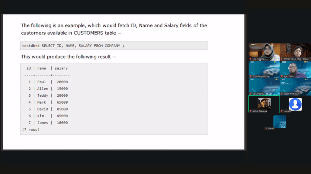 Berikut beberapa dokumentasi pelaksanaan Private Online Training Database MySQL Fundamentals – PLN UPDL Surabaya